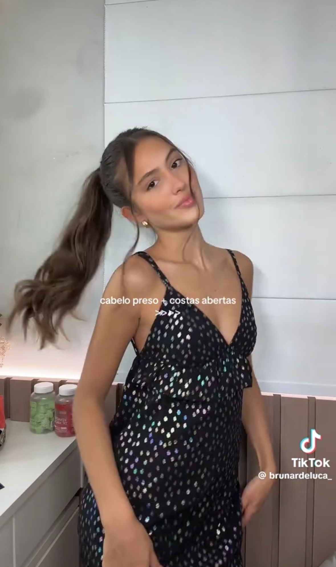 Com um caimento leve, costas abertas e alcinhas que desenham o corpo com charme, o Vestido Carolina é puro efeito “uau”. As gotinhas brilhantes refletem a luz como mil mini estrelas — perfeitas pra noites especiais ou pra quando você quiser ser a própria ocasião.